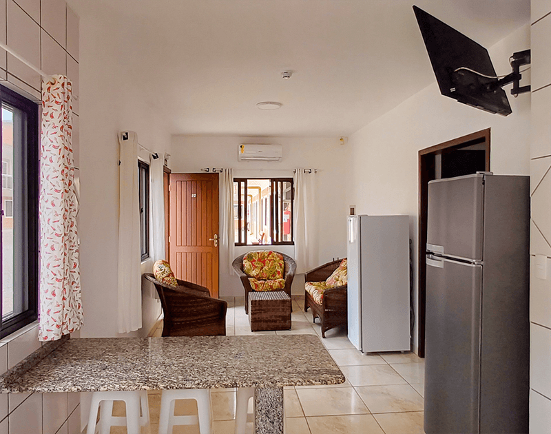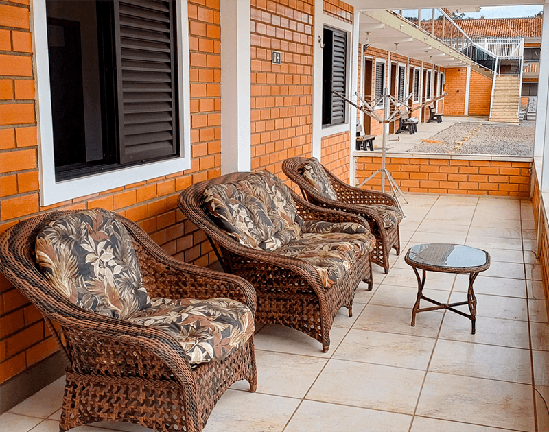 A estrutura da Pousada é completa, nossos quartos, apartamentos e casas são super equipados, além de espaços compartilhados, como cozinha, refeitório e churrasqueira fazem com que nossos hóspedes sintam-se como se estivessem em suas casas. Oferecemos aos nossos hóspedes, sem custo extra, estacionamento, wifi e café da manhã.